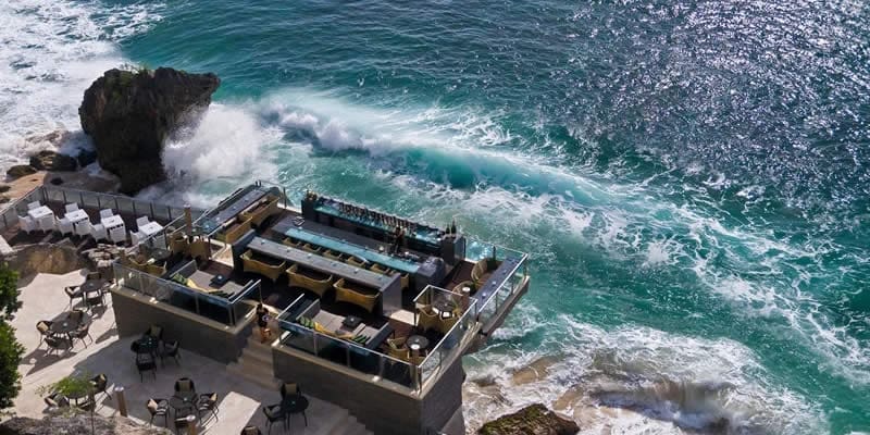 搭乘著空中玻璃電梯纜車…慢慢的滑下來…讓你漸行漸遠的看到峇里島之美。Rock Bar 位於所有巴里島迷都知道的Ayana Resort 斷崖上, 由日本建築師 Yasuhiro Koichi (Design Studio SPIN, TOKYO)所設計