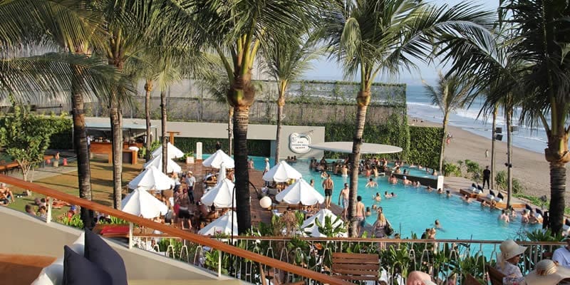 倚著海,夕陽早已西下,燈亮,這兒成了人間的星空,DJ播送音樂,碧藍色的無邊際泳池畔,盡是打扮入時的歐美男女,還有人圍著大毛巾,端一杯調酒,看起來像是在這兒耗了一整天,無妨──酒精、海灘、音樂,熱帶假期奢侈的理直氣壯。