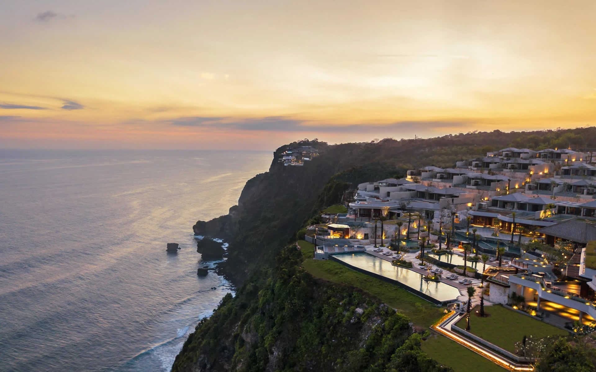 融合峇里島傳統風格與現代義大利設計的寶格麗峇里島渡假別墅,與峇里島最南端的烏魯瓦圖海神廟 (Pura Luhur Uluwatu Temple)一樣位於景觀壯麗的懸崖頂上。