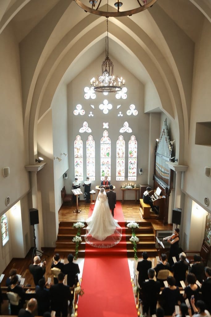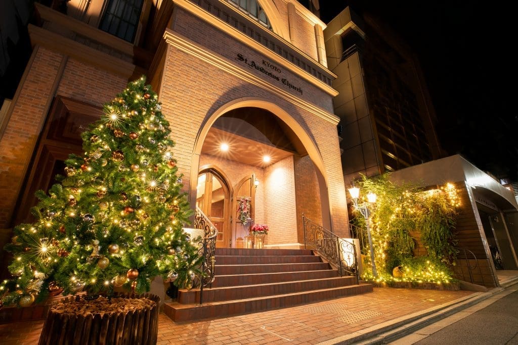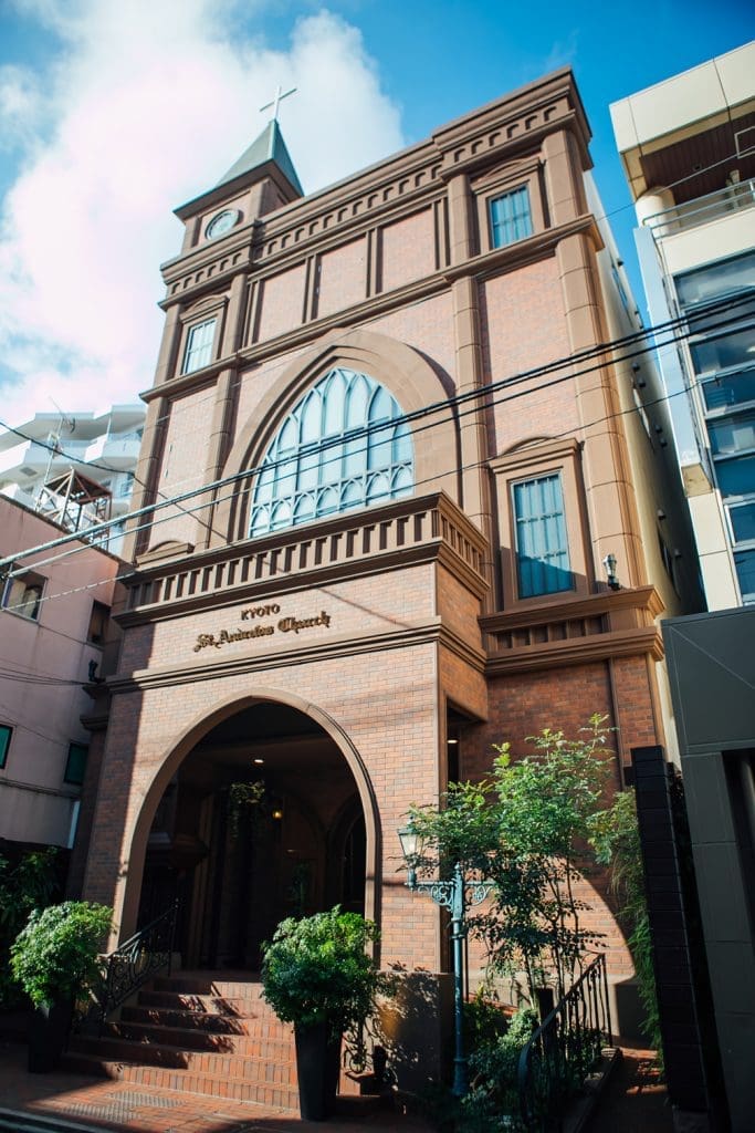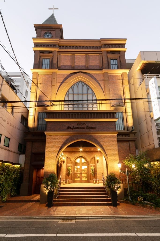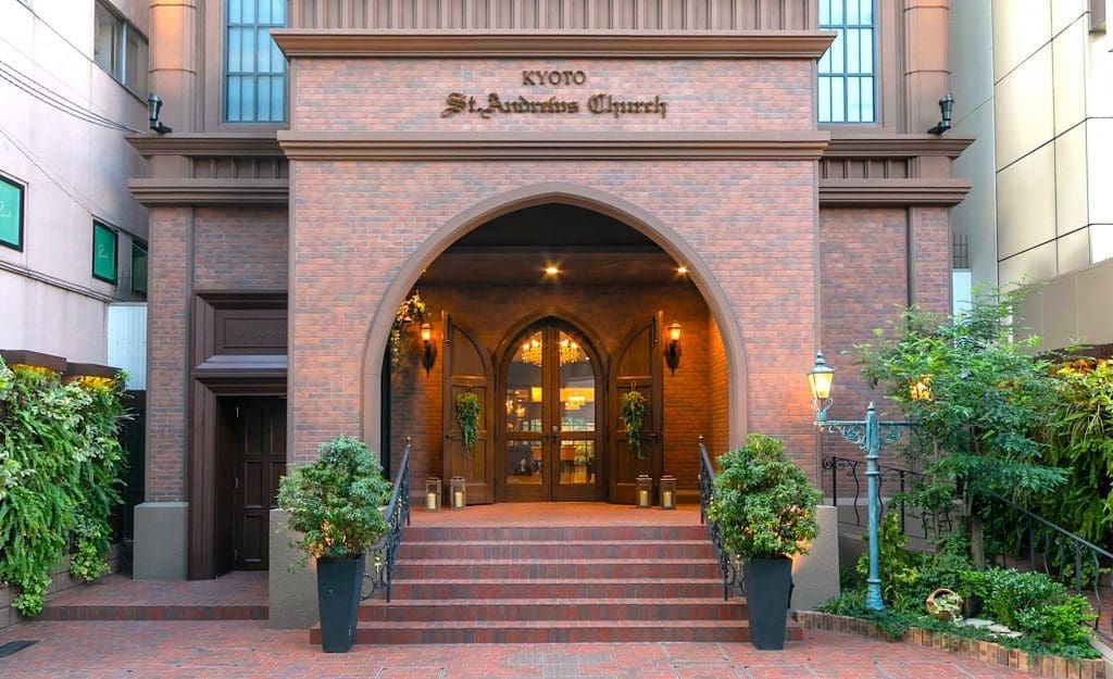 位於京都市中⼼河原町的三條禦幸町的京都寶⽯教堂是專⾨的為婚禮打造的教堂。教堂內的彩⾊玻璃是從18世紀⼀座擁有300年歷史的英國教堂繼承⽽來的。⽤寶⽯融化⽽鑄成的彩⾊玻璃,在⼤教堂舉⾏婚禮時,寶⽯從上⽽下閃耀著,散發出莊嚴⽽溫柔的光,是對兩位新⼈最真摯、最美好的祝福。 歷史最悠久 ,2018-2019年得到日本知名婚禮網站京都地區 ,最多人推薦的婚禮場地第一名 。 儀式時間:11:30or12:00/15:30 容納:70人 京都寶石教堂婚禮 St.Andrews Church Kyoto 京都寶石教堂宴會廳
