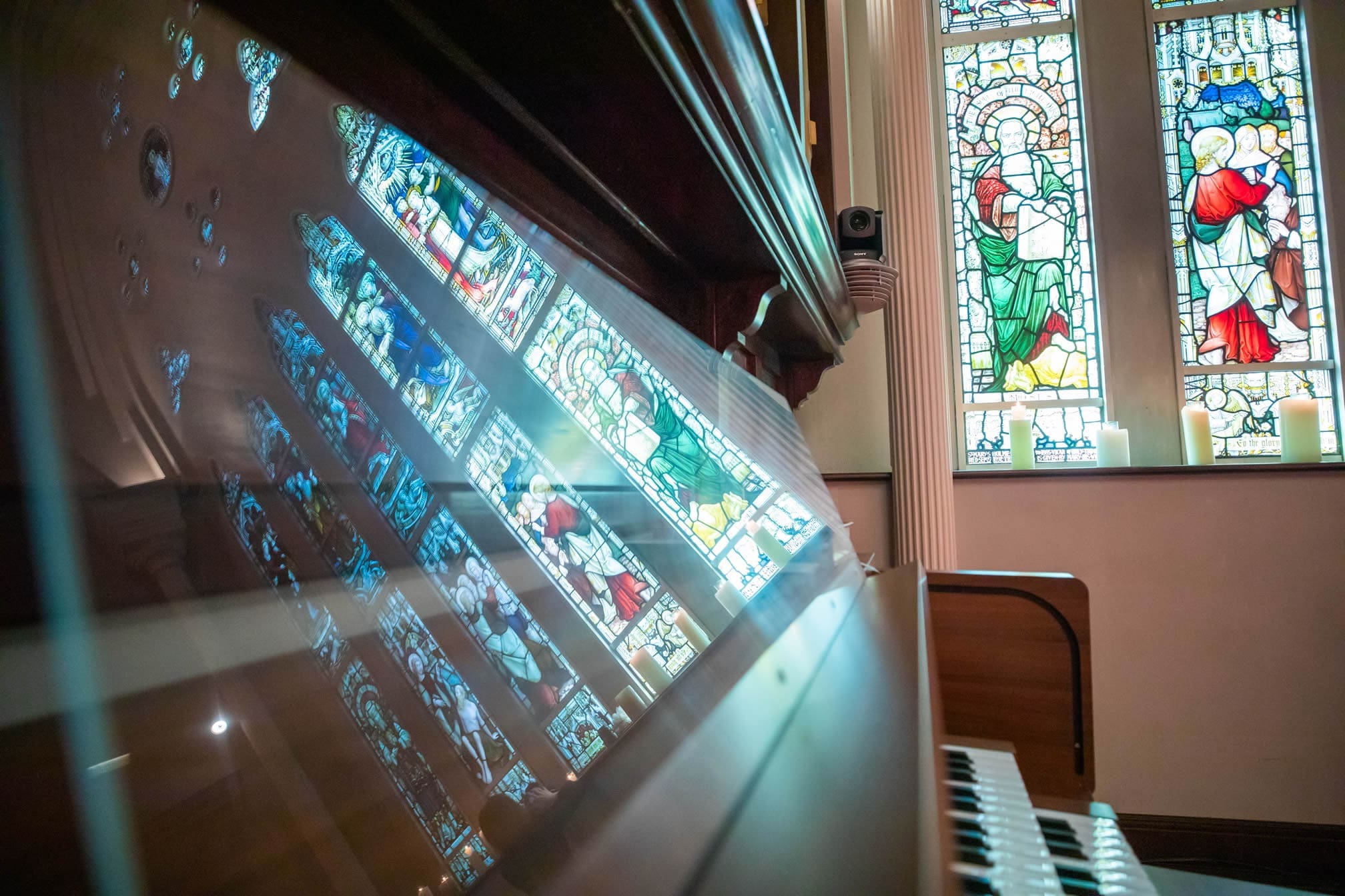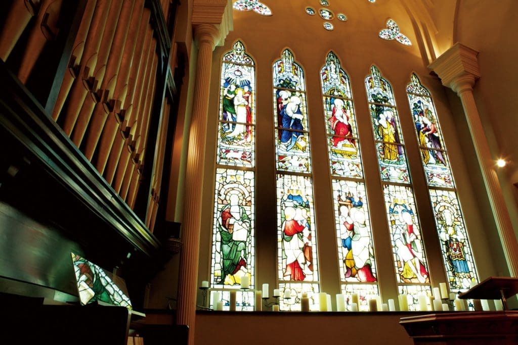 英格蘭南⽅的美麗的城市–巴斯,在這個城市裏到處都是美術館博物館跟教堂。⼤阪寶⽯教堂的古典彩繪玻璃則來⾃這美麗的城市。