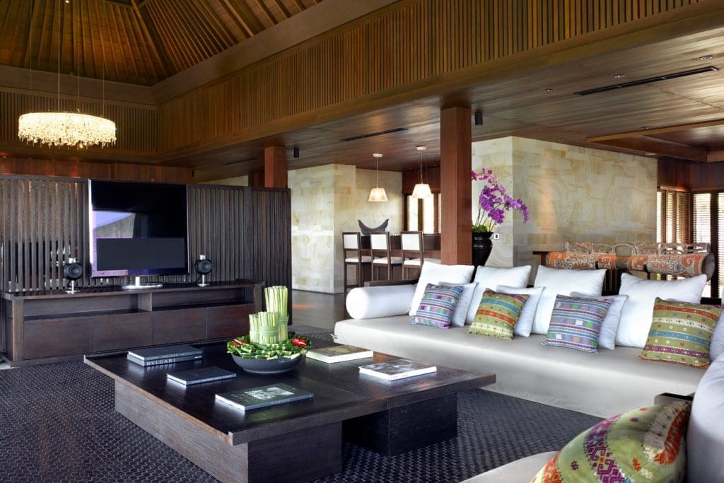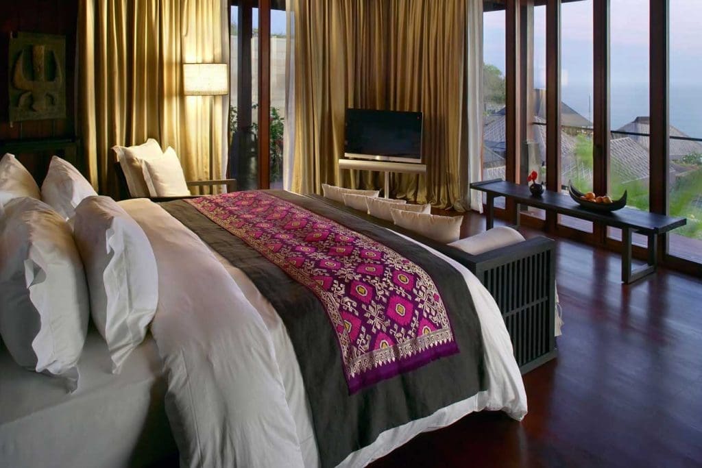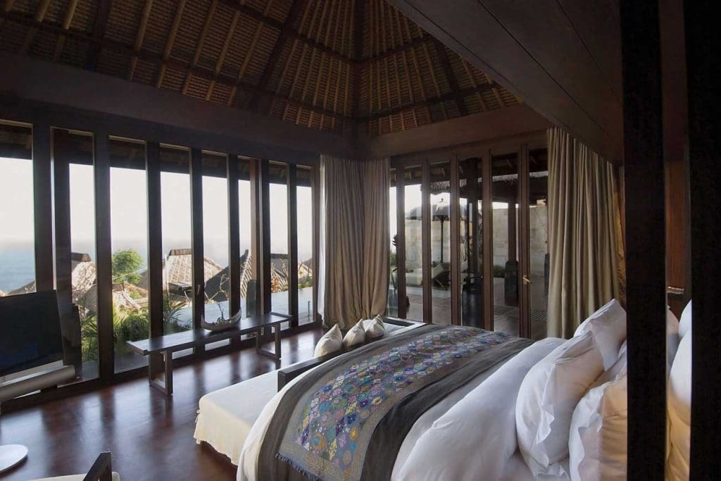 - 絕佳住宿風格:順延著印度洋懸崖的59間獨立私密的別墅,裝潢皆選用印尼當地石材及木材,呈現出峇里島傳統的藝術風格,內部裝飾選用80件以上的印尼古董手工藝品,床單亦是使用印尼式彩色金錦緞,當然沐浴保養用品絕對使用自家Bvlgari 產品。每棟別墅擁有1個露天涼亭、觀海陽台、私人泳池、網路、冷氣空調、電視、CD音響…..等配備。