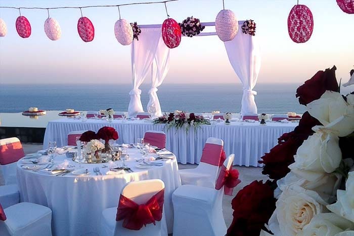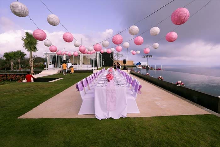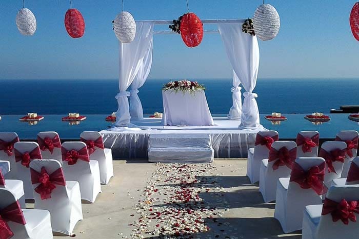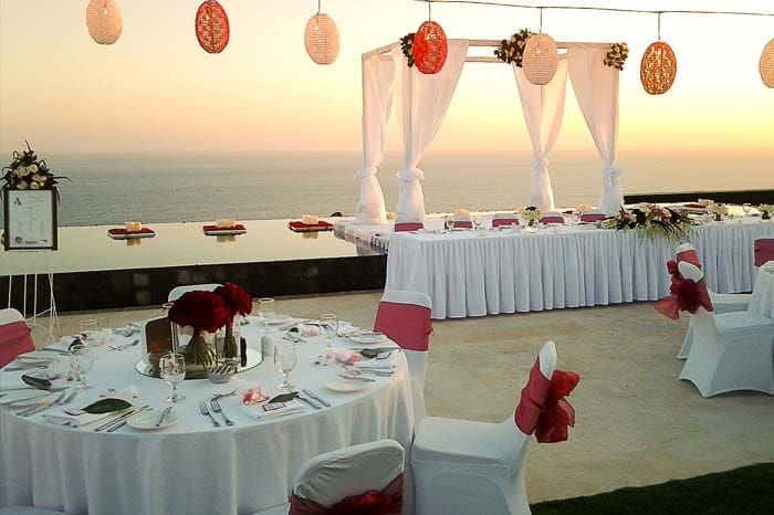 Sanctus Ocean Villa座落在5.000平方米鬱鬱蔥蔥的海景花園別墅中。在這的水上婚禮以26平方米無邊泳池甲板上浮架式呈現,婚禮叩拜令人驚嘆的懸崖海景於眼前及誘人印度洋無盡海。海灘下面起伏的海浪聲,以童話式的婚禮風光創建了一個宏偉的祈福儀式,別墅處裡的日式建築設計小橋造景和滿滿睡蓮池下凜然色彩繽紛的花園和寧靜水域籠罩一次難忘的經歷捕捉小隱天堂裡真正無與倫比的世外桃源!在這好好為您神話般的神聖婚禮留下一個無限美好記憶吧。