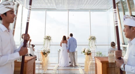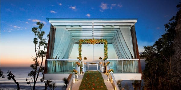Dewa Dewi Chapel位於峇裡島南部烏魯瓦圖區的Anantara Resort & Spa的範圍內。充滿著透明感的玻璃教堂,坐落在酒店靠海的崖邊,從酒店建築向海邊伸展猶如建造在海上,讓一對新人及賓客把印度洋的廣闊海景一覽無遺。除了一望無際的海景外,從教堂眺望出去更可欣賞到美麗的日落。