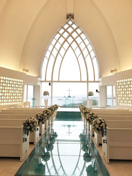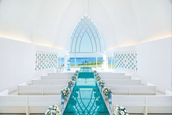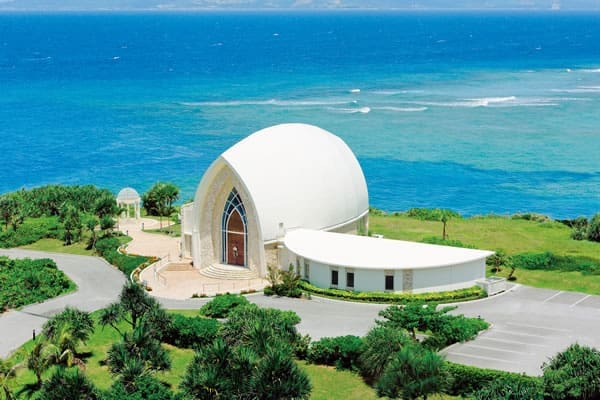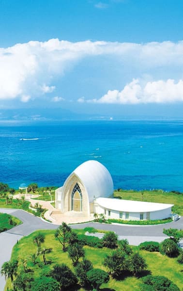 艾葵露雀教堂位於沖繩島的恩納村內,恩納村以寧靜美麗見稱,令教堂廣受日本新人喜愛。教堂的外型設計匠心獨運,半圓的雪白外觀,配以大自然的引人入勝的景色,讓新人猶如被暖暖的海水包圍著。教堂的聖壇配合庭園的綠悠悠草地,進入教堂時讓心靈潔淨,長長的聖潔之路引領新人宣讀誓詞,夢想的婚禮能在艾葵露雀教堂實現。