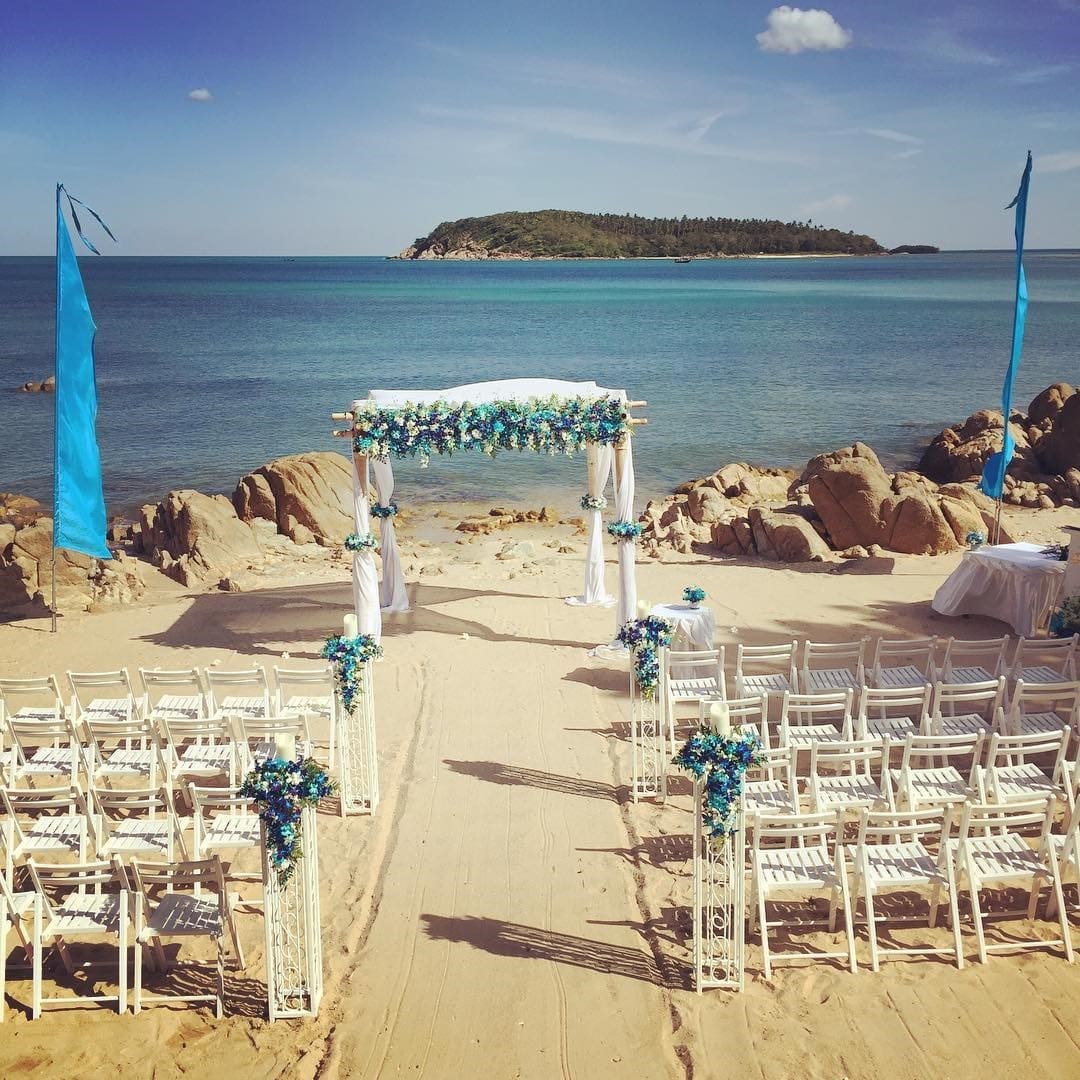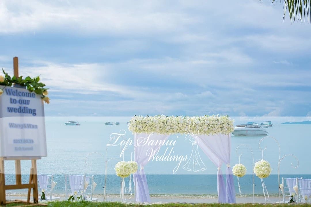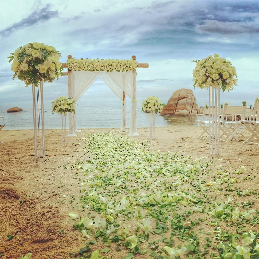 蘇美島小幸福夕陽沙灘婚禮 Samui How Sweet Beach Wedding 蘇美島小幸福夕陽沙灘婚禮項目 婚禮沙灘使用中文婚禮策劃師全程溝通英文司儀主持婚禮儀西式婚禮標準鮮花拱門 或 四角亭(玫瑰、洋桔梗、泰式蘭花等)新娘手捧花新郎胸花現場音響系統浪漫花瓣雨新娘花瓣路婚禮白色竹節椅及裝飾迎賓飲用水紀念婚禮證書(非法律性)新人臨時化妝間及休息室新人酒店-場地往返接送 ●【早鳥預定特別再送您好禮】 婚禮精緻蛋糕新人禮成祝酒氣泡葡萄酒*1瓶婚禮豪禮 ⓪備註:新郎&新娘禮服 請自理